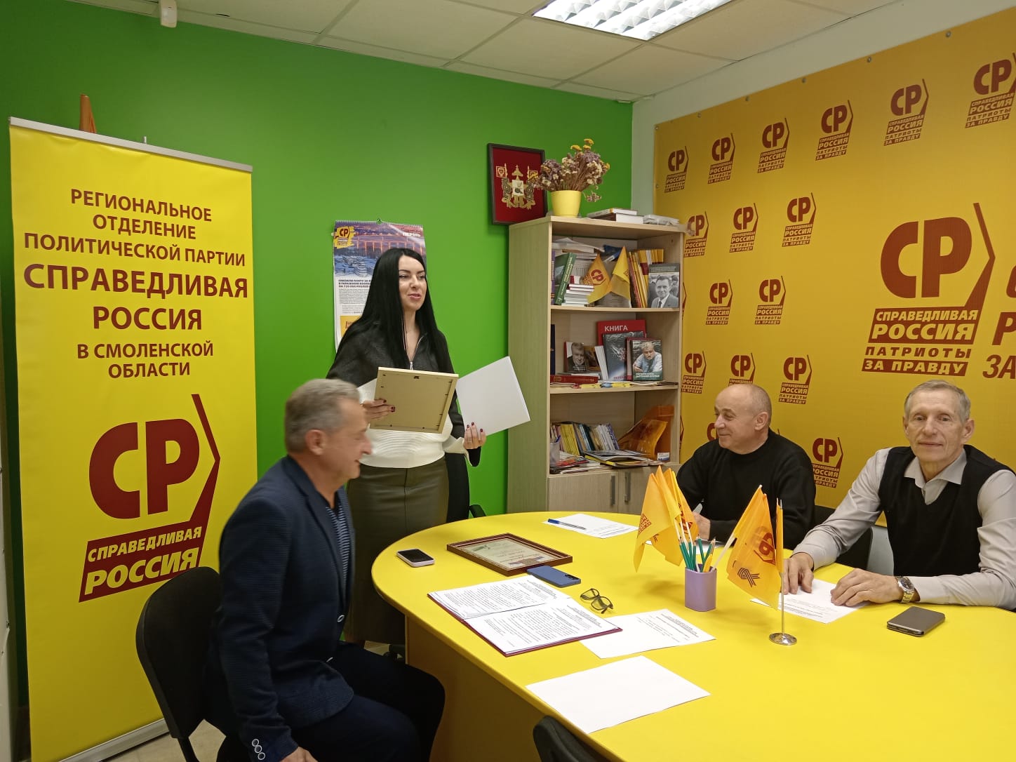 6 ноября состоялось заседание Бюро Совета регионального отделения партии СПРАВЕДЛИВАЯ РОССИЯ в Смоленской области. На заседании были рассмотрены текущие вопросы деятельности регионально отделения.